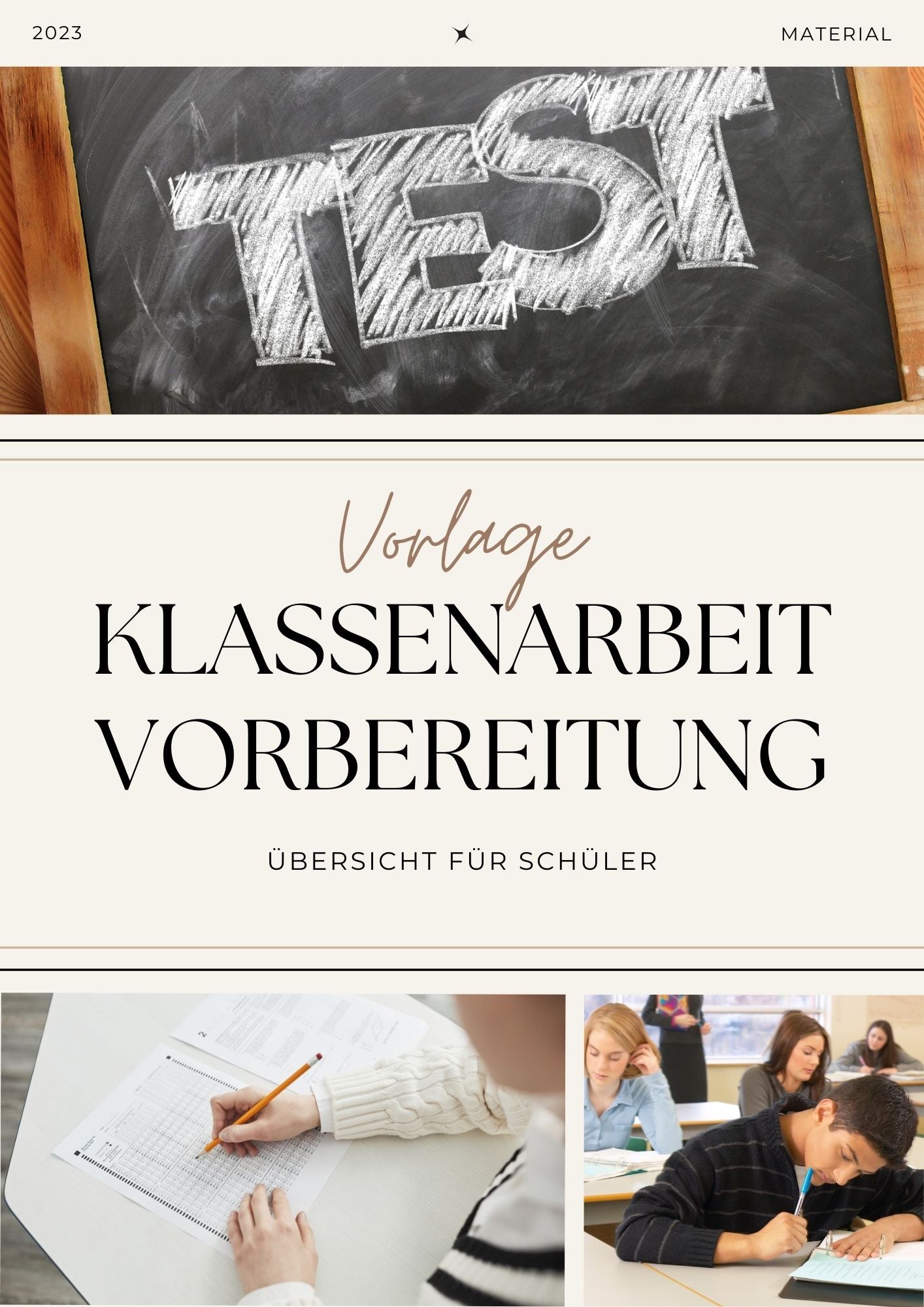 Diese Vorlage ist ein praktisches Tool, das du direkt zur Vorbereitung auf die Klassenarbeit an deine Schüler weitergeben kannst. Sie bietet klare Strukturen, wichtige Lerninhalte und hilfreiche Tipps, die den Schülern helfen, sich effektiv und gezielt auf die Prüfung vorzubereiten. Mit dieser Unterstützung können sich die Schüler nicht nur besser organisiert fühlen, sondern auch ein tieferes Verständnis des Themas entwickeln, was ihnen mehr Sicherheit und Erfolg bei der Klassenarbeit bringt.